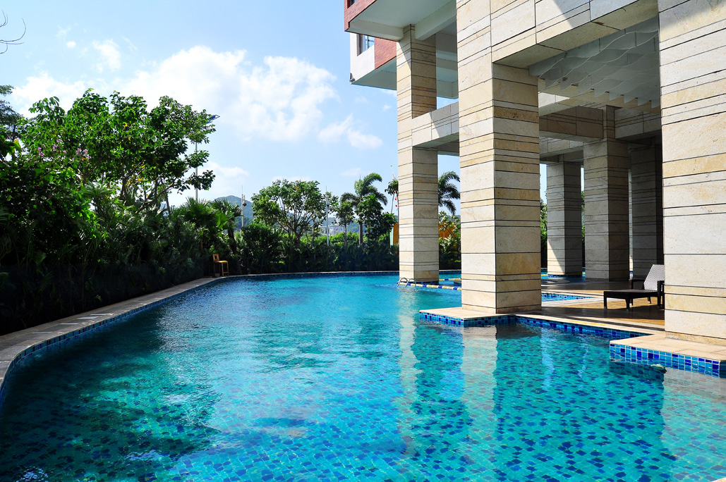 酒店占地面积近五万平方米,建筑面积近四万平方米,酒店园林占地面积为一万五千平方米。