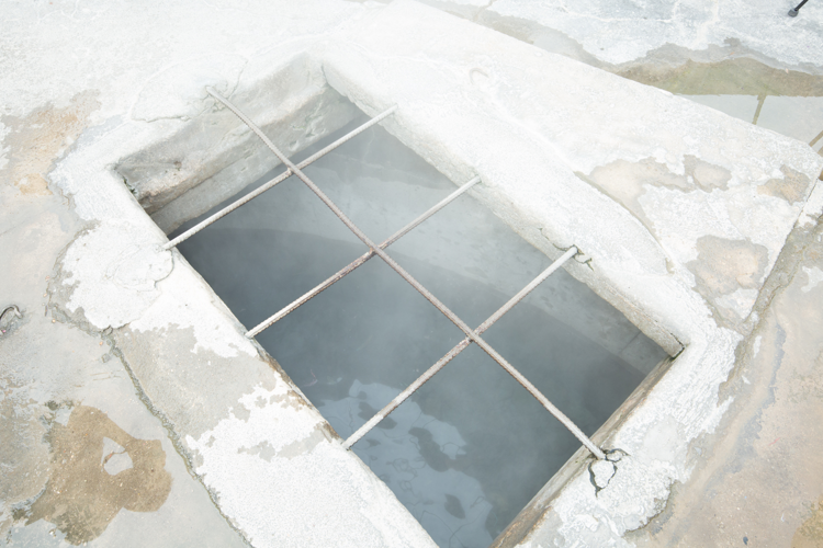 温泉从石板下流过,石板发热