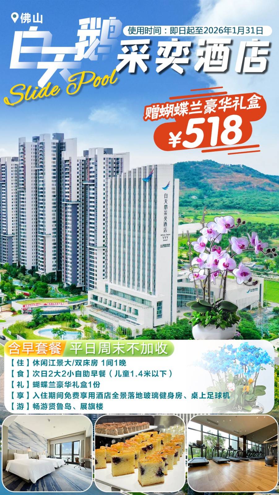 佛山白天鹅彩奕酒店位于佛山市南海区“梦里水乡”之称的里水镇,环境优美,风光秀丽,是一家充满鲜活多彩的时尚轻奢高星级商务会议度假型酒店。酒店是白天鹅酒店集团向市场推出“白天鹅彩奕酒店品牌”之后的旗舰店,酒店标志的造型是展翅高飞的天鹅翅膀,象征着采奕酒店依托白天鹅品牌与众人向上飞翔、协力前行。