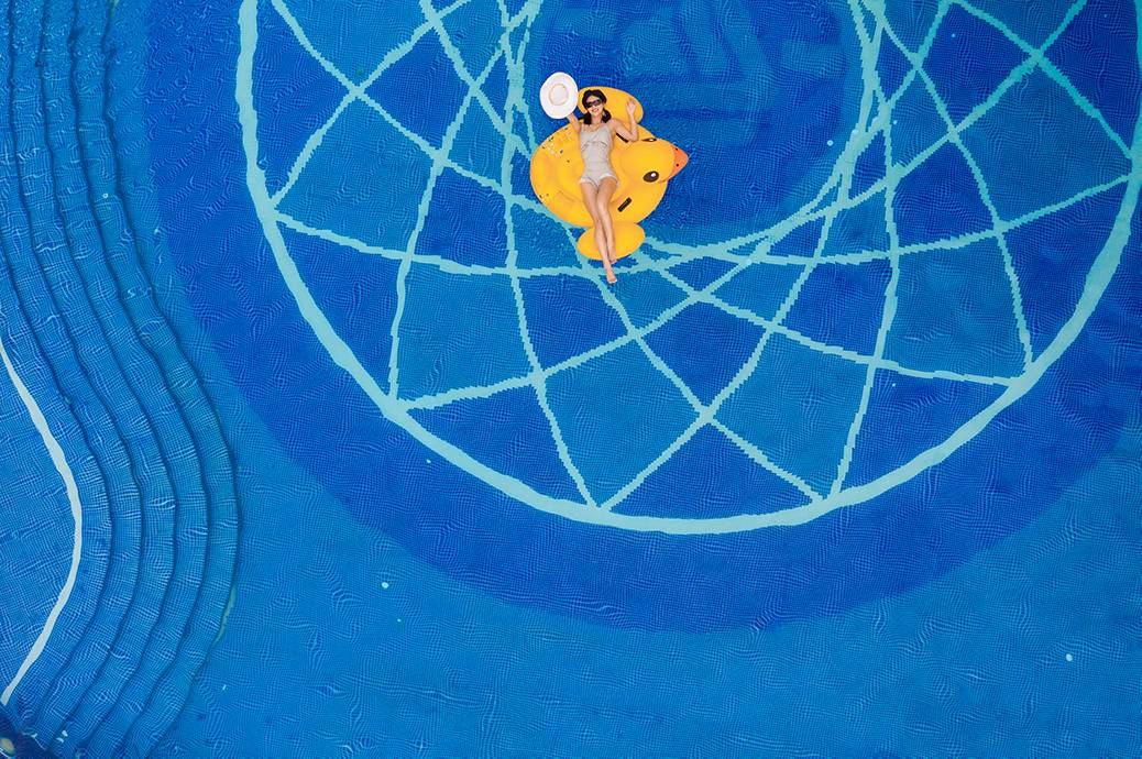 酒店的空中泡池是依巴厘岛的装修风格建立而成