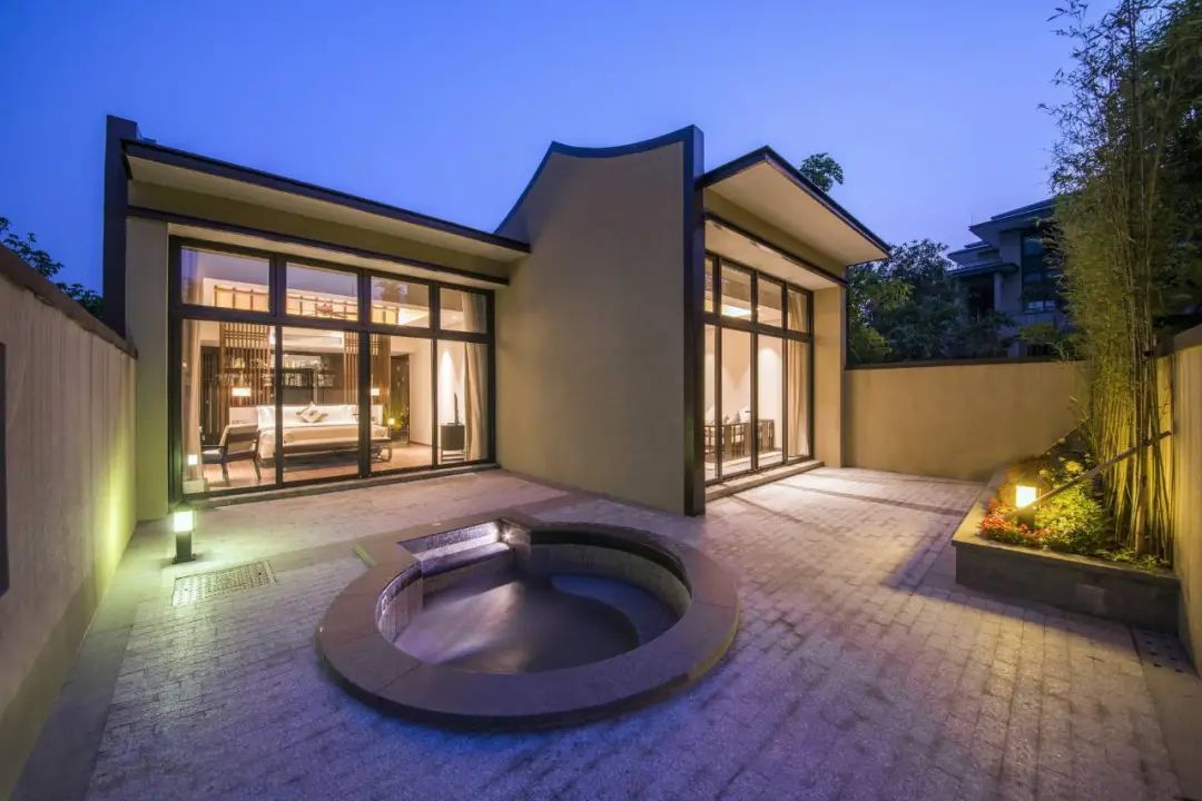 酒店分为内庭区、温泉泡池区、亲水合院区、山地别墅区四大区域。