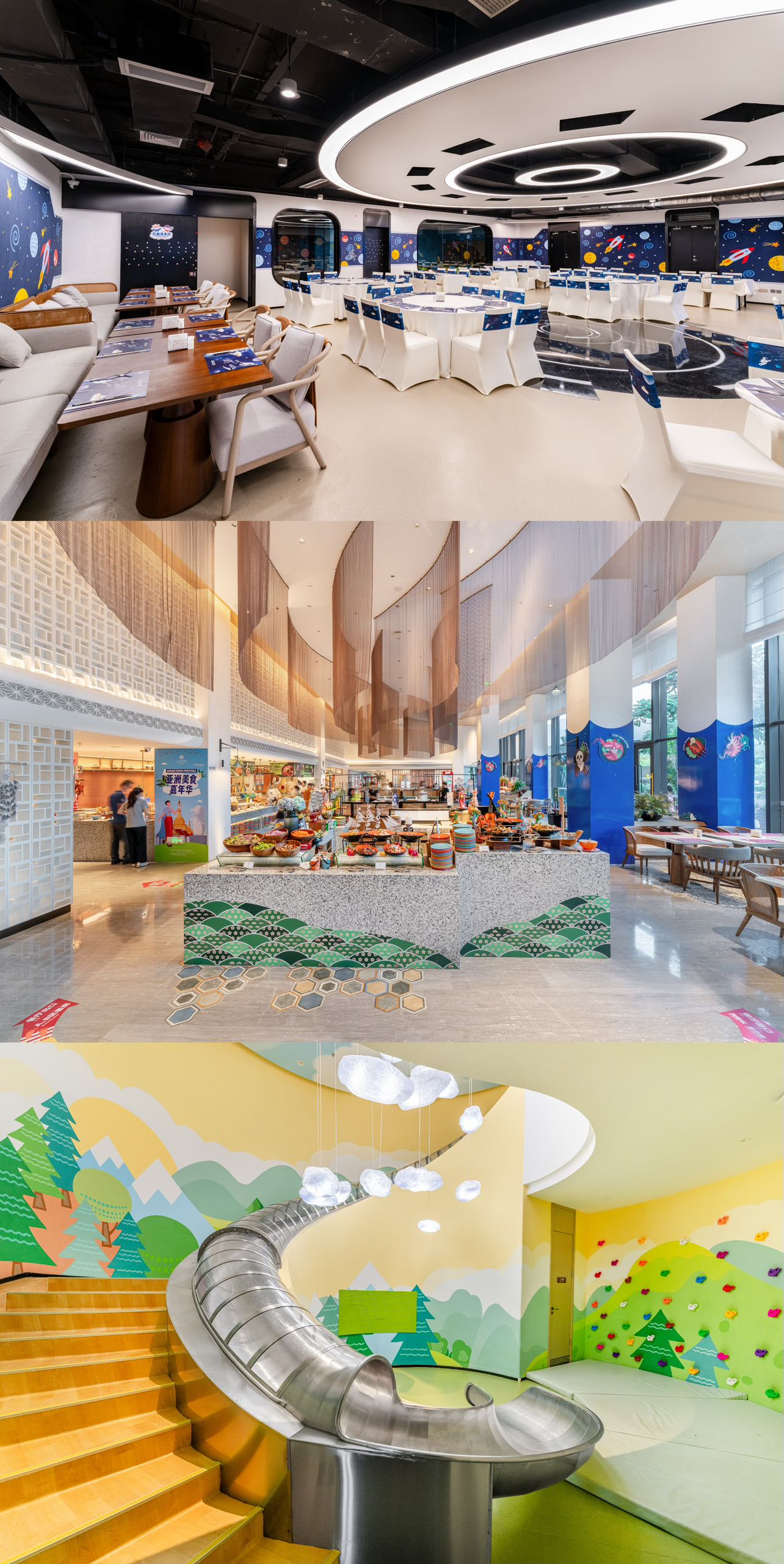 设有室内、露台餐区和儿童餐区;