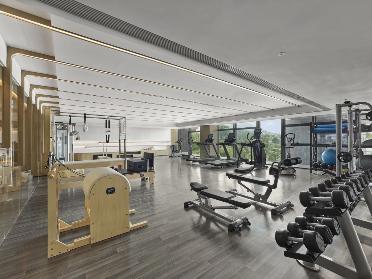于酒店二楼配备先进完善的训练器械及普拉提装备,