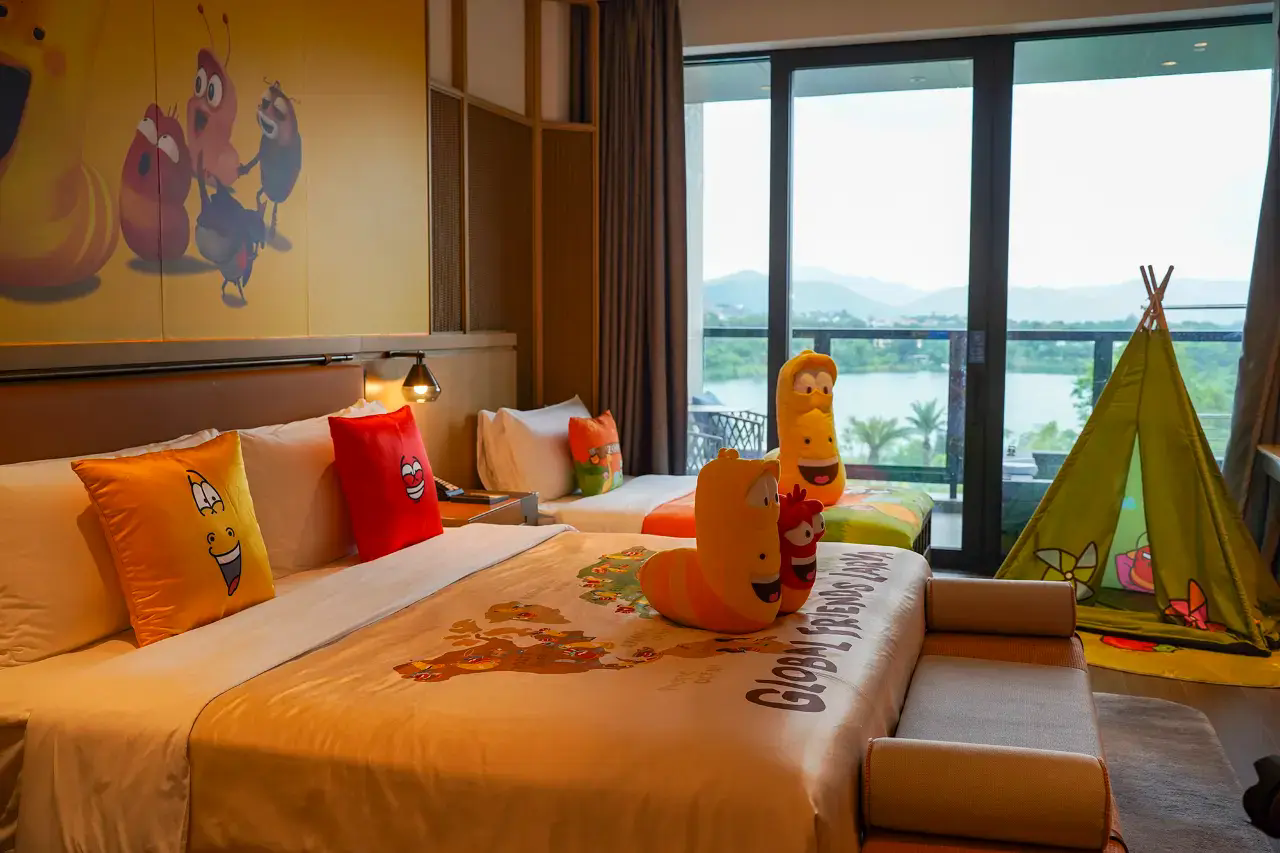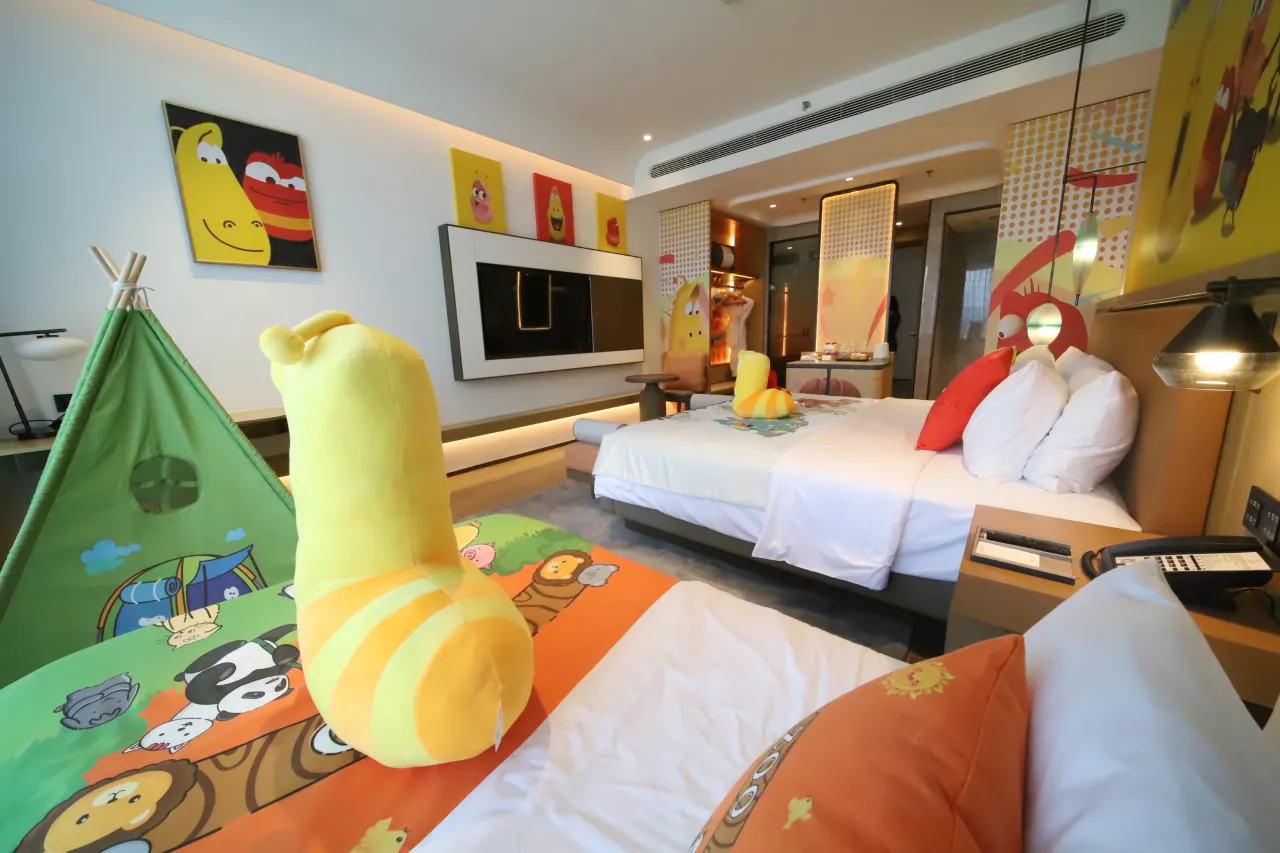 爆笑虫亲子主题房丨独立温泉泡池丨金可儿床垫