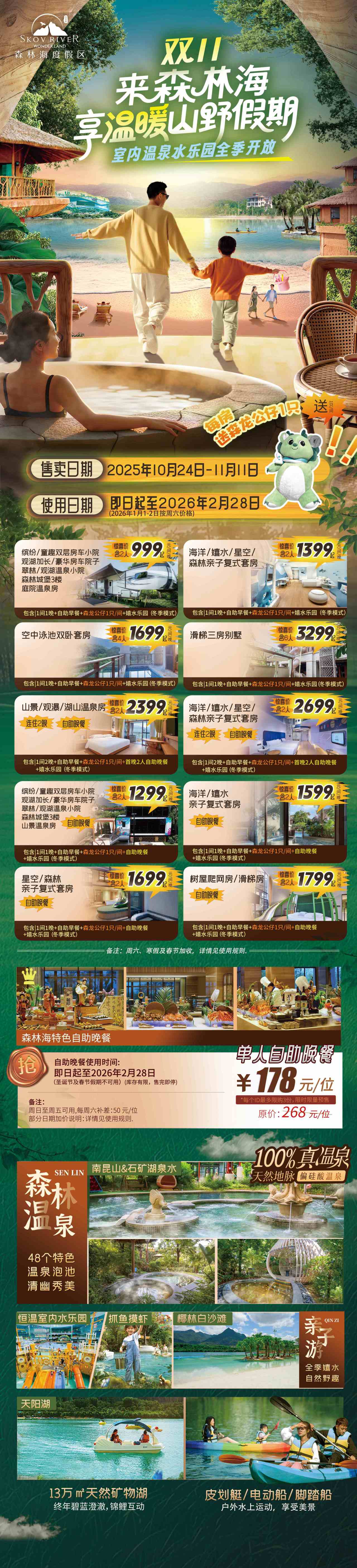 入住森林海温泉度假酒店,不仅乐园门票一价全包,更能吃上美食!玩得酣畅淋漓,吃过山珍海味,再回房间享受专属私人泡池,睡个美美的觉~ 如此完美的安排,夫复何求!?