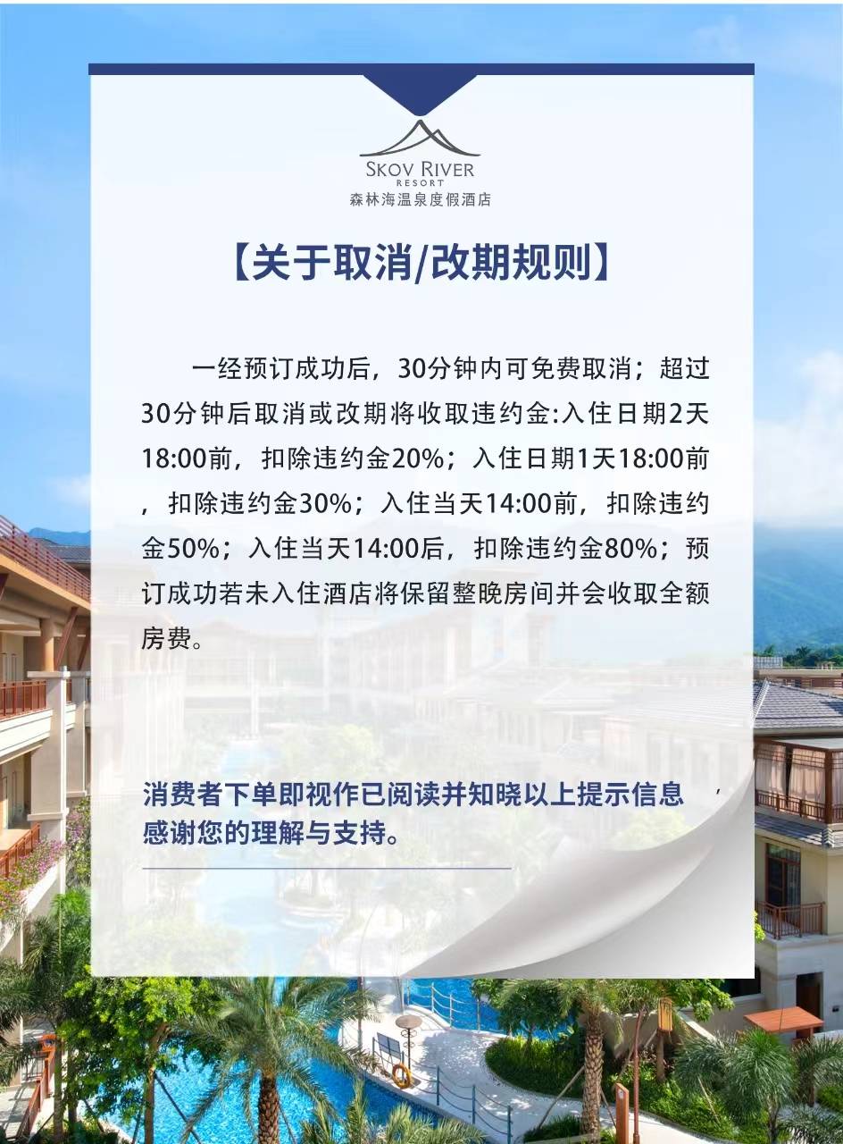 ①:山景温泉房/观瀑温泉房/湖山温泉房(随机安排)1间2晚