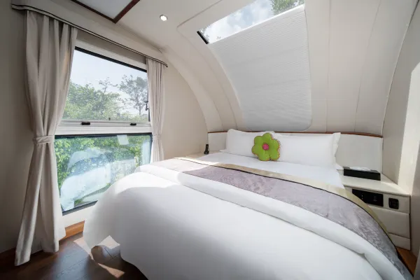 ①:山景温泉房/翠林温泉小院/观湖温泉小院/庭院温泉房/森林城堡3楼/缤纷双层房车小院/童趣双层房车小院/观湖加长温泉房车院子/豪华温泉房车院子(随机安排)1间1晚
