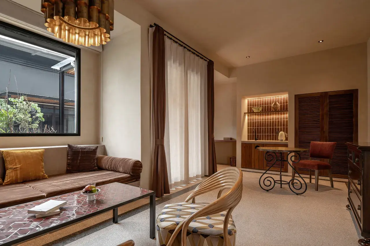 百年前,西洋别墅群在莫干山错落生长,将海派基因注入这片山林。现今,西坡·庾街以「海派老钱风」为灵感,将低调的“奢”隐藏于空间的细节之中。
