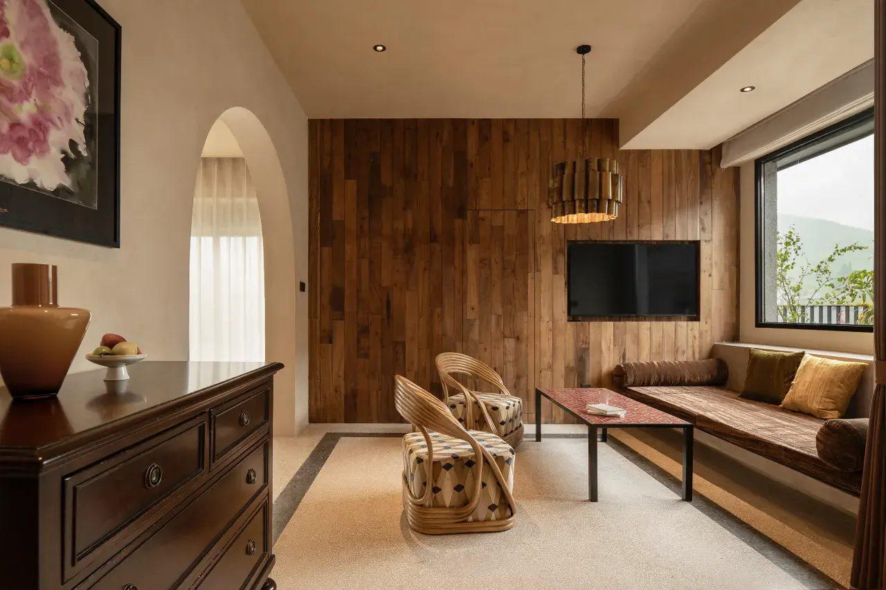 虽然西坡·江山拥有极佳的地理位置,为了营造怀旧感十足的田园风,设置了3个村落仅13间客房,分别是在溪边、在山间、在田野。