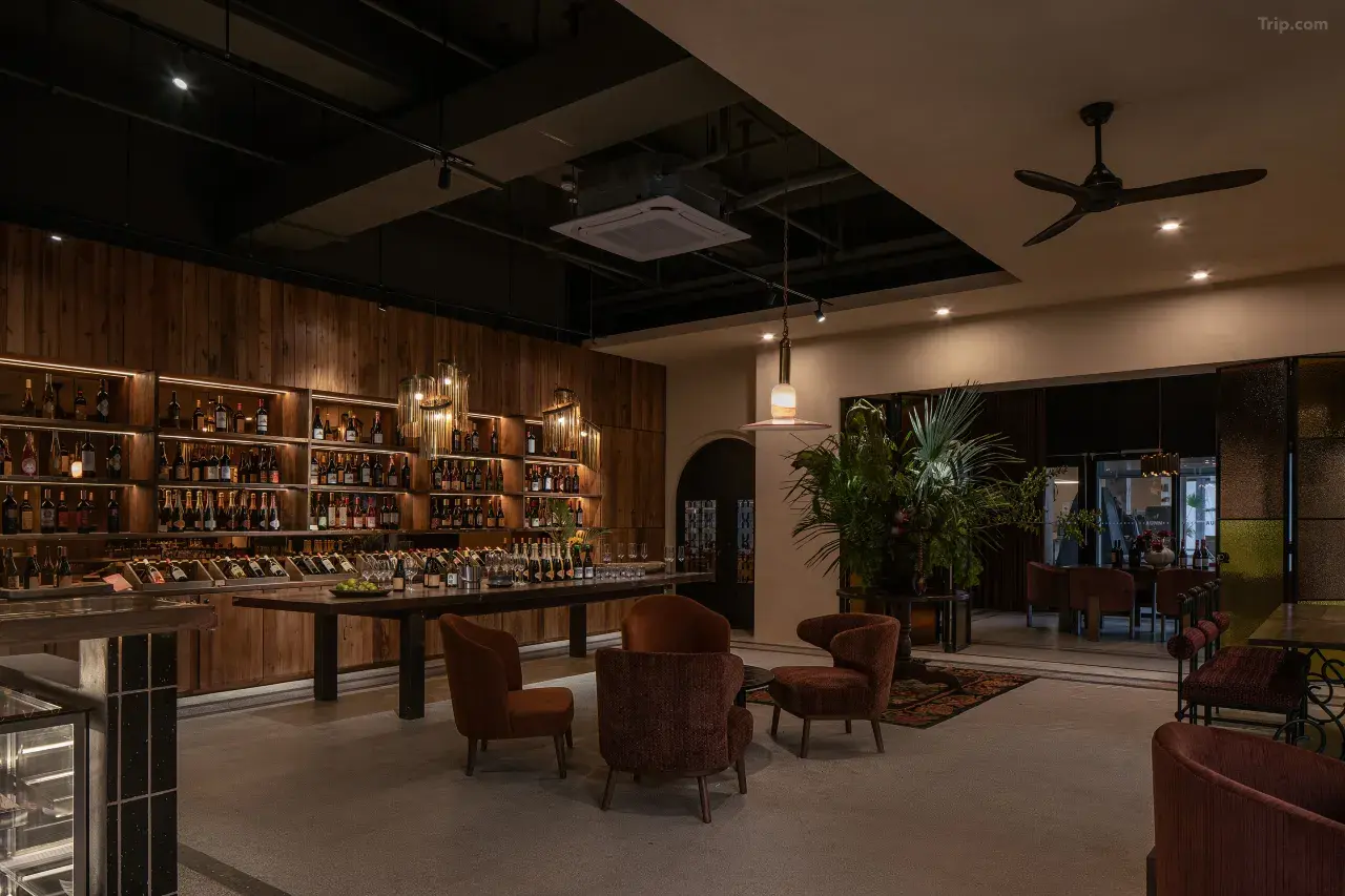 「西坡·庾街良室」打通了两栋楼,新造了这个全新的生活美学空间。中古家具沉淀岁月痕迹,美式皮椅慵懒弧度诠释舒适哲学,法式珐琅裂釉搭配黄铜灯饰,波斯地毯繁花上于吧台边缘。