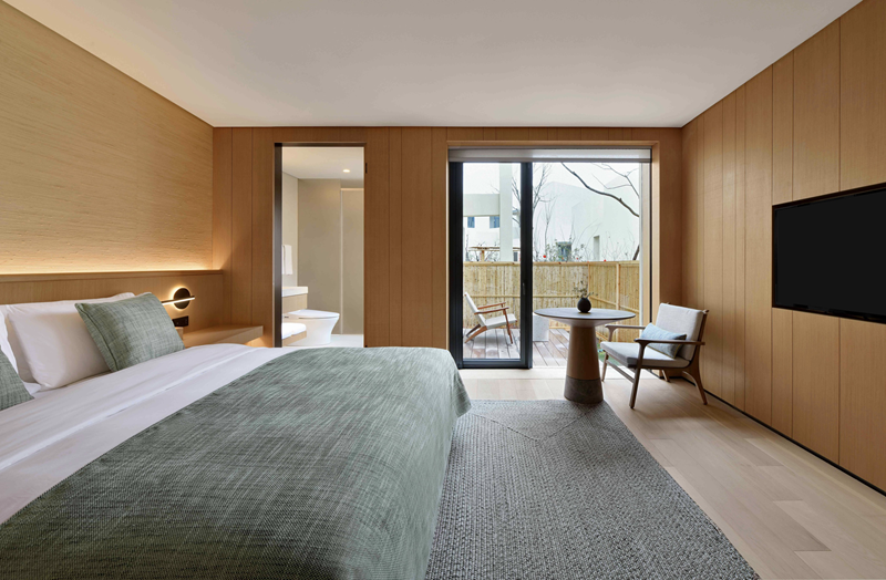 设计在木质的温暖调性中,仍以桑蚕文化作为寓意,可见桑之绿,丝之紫的墙面隐喻,搭配蚕茧与茧花造型的装饰,引领旅人在苏式的闲适假期中,感受千年古镇生生不息的活力和至今仍带给人们的无限艺术灵感。