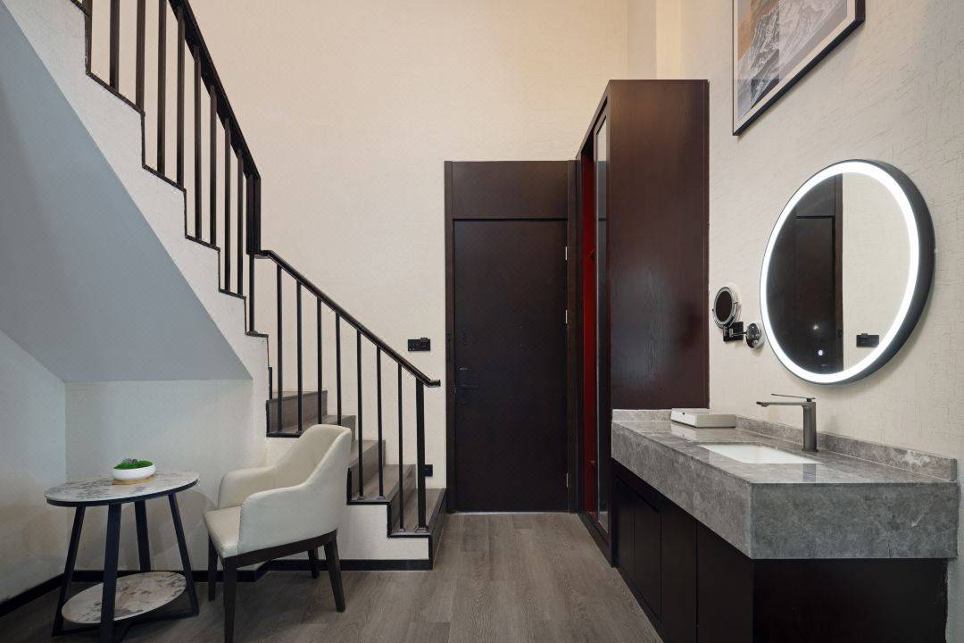 漫步在万寿宫历史文化街区,青灰色的赣派建筑古朴雅致,飞檐翘角,亭台楼阁,一砖一瓦都在诉说着往昔的故事,酒店在保留原有建筑肌理上,以“赣派民居”为魂,将江右商帮的厚重历史和现代奢华悄然结合。