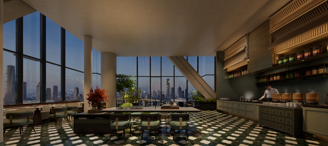 阳光穿玻璃天顶洒满空间,开阔又明亮