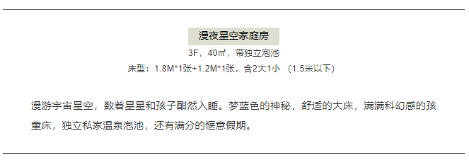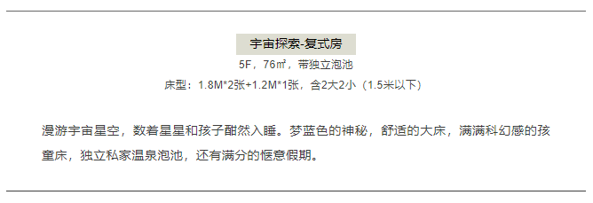 森林狂欢、精灵城堡、宇宙探索复式房(园景)加收 | 2025年10月-1月30日的周六 700; |