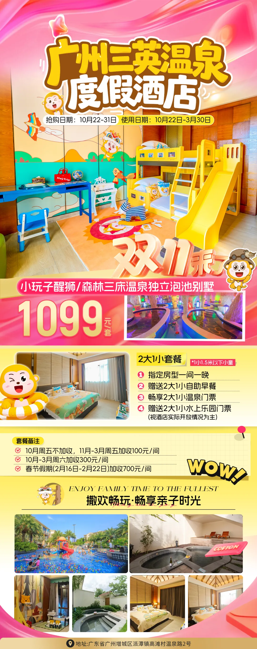 【双11提前购丨广州财富温泉酒店】¥1111起抢雅典双床房/雅致大床房 1间2晚或2间1晚(可拆分),含双人早餐+正餐套餐+无限次空中温泉,儿童乐园等~
