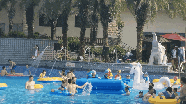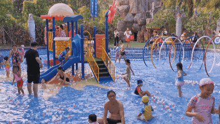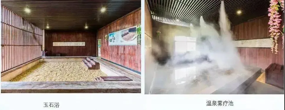 温泉区设有动感娱乐区、日月乾坤区、中药养生区
