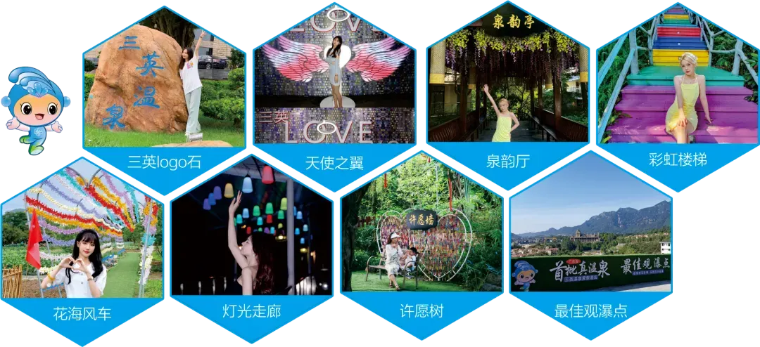 溶洞温泉区、树洞温泉区、浪漫温泉区、高山温泉区等