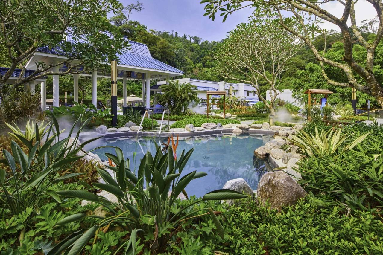 设有 19 个功能池、干蒸室、湿蒸室,有美容颜、促进新陈代谢、增强体质等功效,让您和家人置身于花园式的泡池中央享受泡汤乐趣。