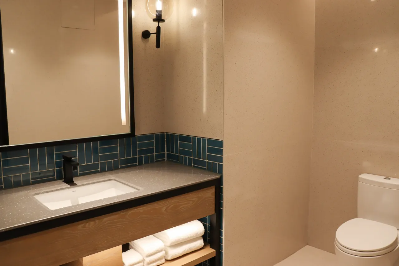 品质床垫助您深度好眠,干湿分离的卫浴间配有TOTO洗漱台,以及品牌定制ACTIV全套洗护备品,为您带来备受呵护的沐浴体验。