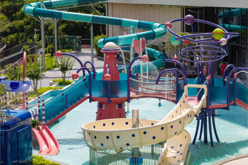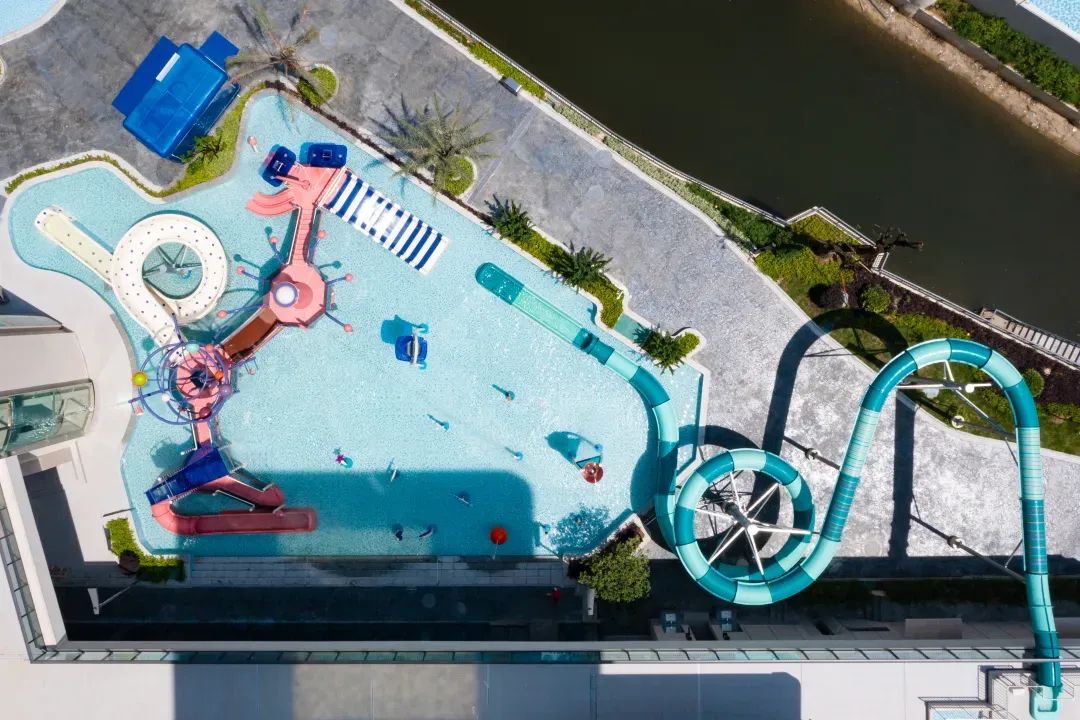 水上攀岩、高空旋转滑梯、室内外亲子嬉水空间