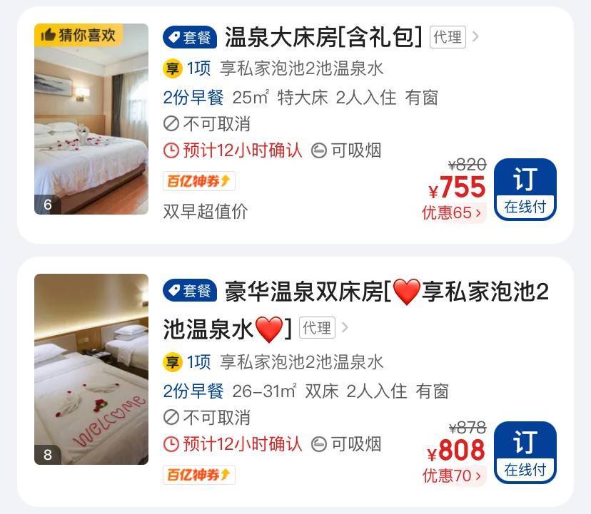 2、房间均配有私家温泉泡池,赠送一池温泉水