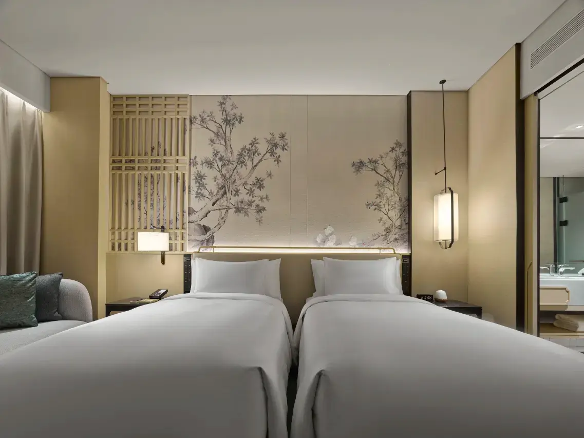 大堂吧主打苏州新中式茶饮,将传统的茶文化与现代创新相融合,创造新颖、时尚和健康的茶饮。特色的茶叶和原料、注重健康与可持续性以及舒适的休憩环境。