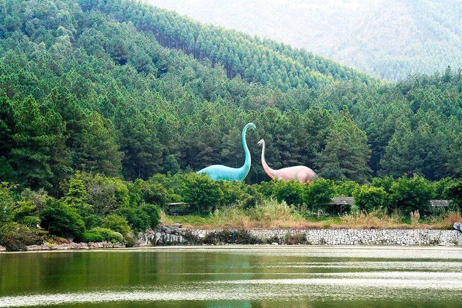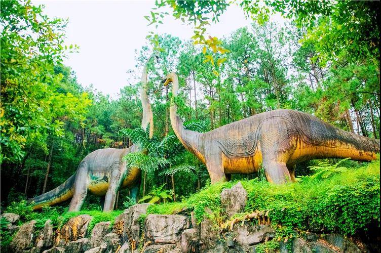 在古桫椤树丛中隐藏着近百条仿真恐龙