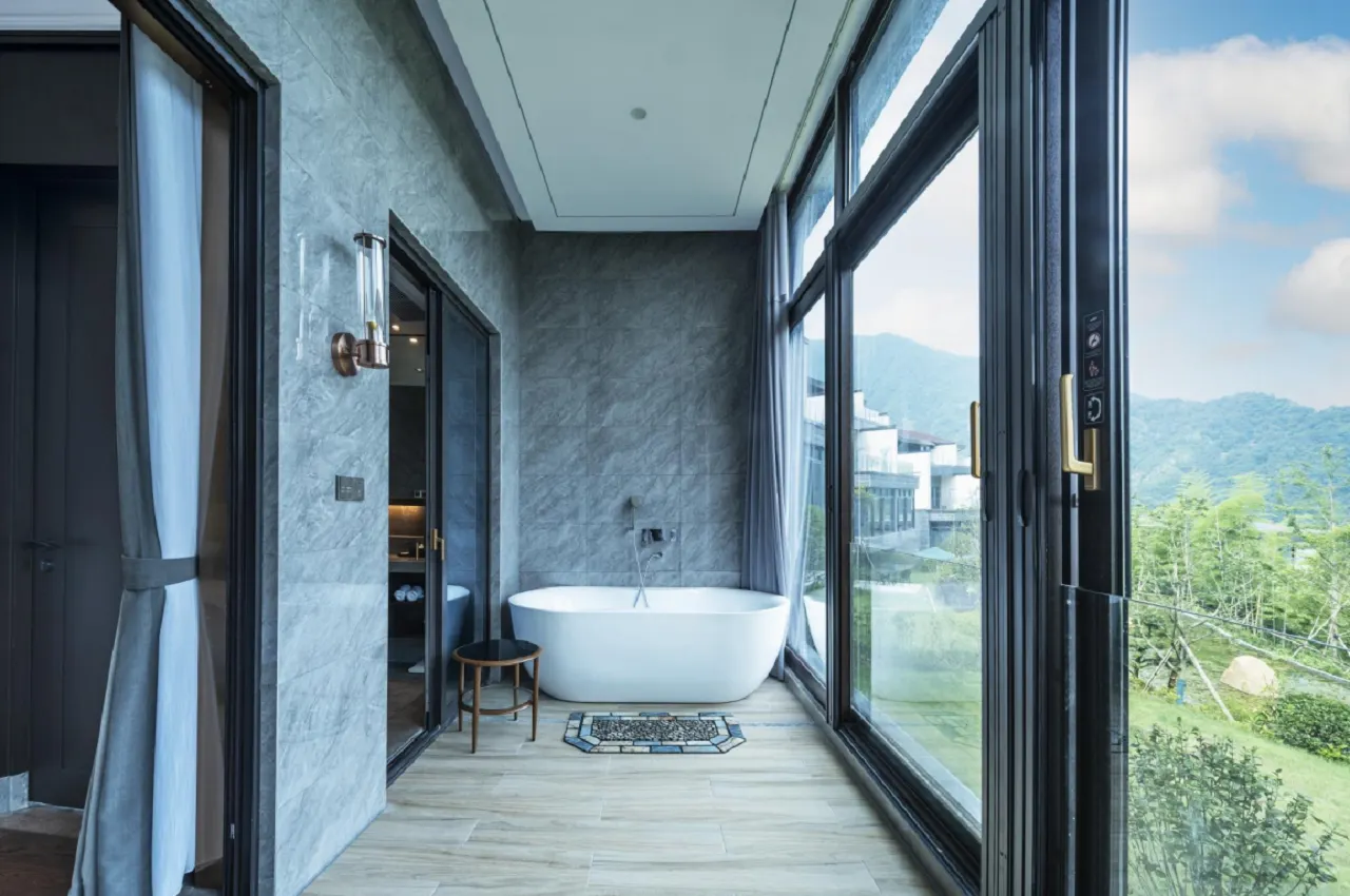 客房散布在山居叠墅中,以套房起底,空间面积大,64㎡起,房间数也更多,共有303套。大部分客房均设有景观阳台,并且户户引真温泉入户,实现足不出户就能泡汤的度假愿望。