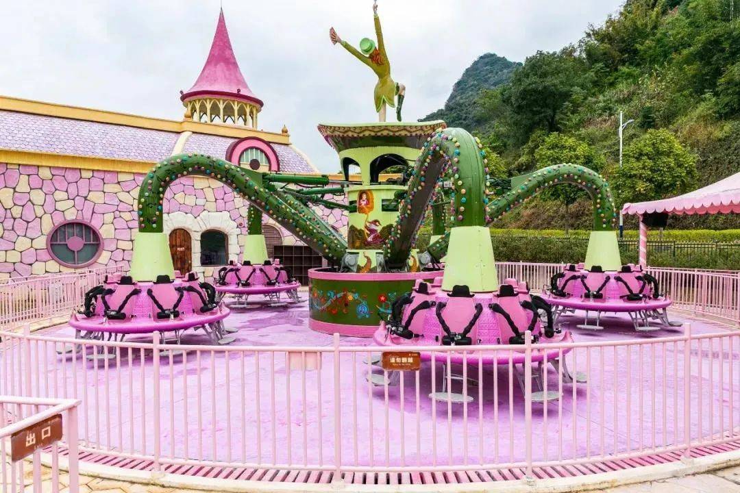 粉色少女系的糖云国、甜美梦幻的奶溪国激情刺激的可可洞国,横跨天际的七彩摩天轮