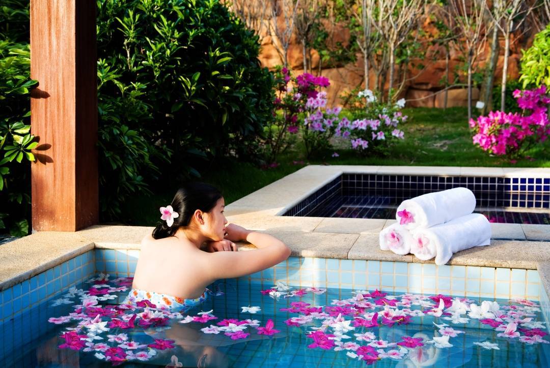 在茂密的竹林间,听着小桥流水的声音,浸泡珍稀温泉,在微风轻拂间闭目养神,暂时远离城市喧嚣,抛开烦恼,享受此刻难得的惬意!!
