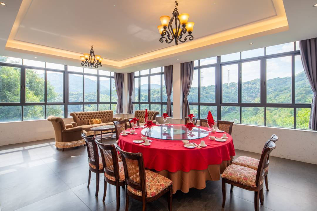 英伦风格的餐厅、丰富可口的美食让你在泡汤后能大快朵颐~欧式休闲度假布置、浪漫灯光、悠扬音乐为用餐更添几分惬意~~半壁果山美景跃入眼帘,诱人的美食更催人择椅落座!