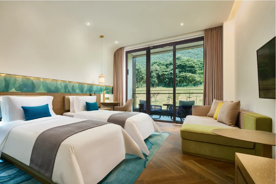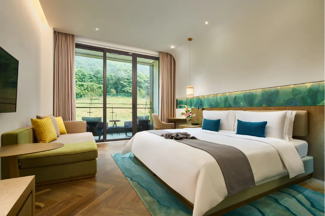在度假村,303间优雅的客房与套房,每间房都拥有自己的独立阳台,可饱览茶园梯田和竹林美景,与自然近距离接触。PS:阳台上配有伸缩式的晾衣杆,很适合连住的家庭