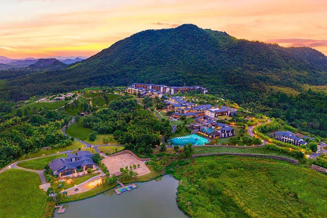 整座度假村背靠灵峰山,拥山水、茶园、农田入怀,且竹林环绕江南特色浓厚,一呼一吸之间,都是满满的负氧离子,四季都有美景。