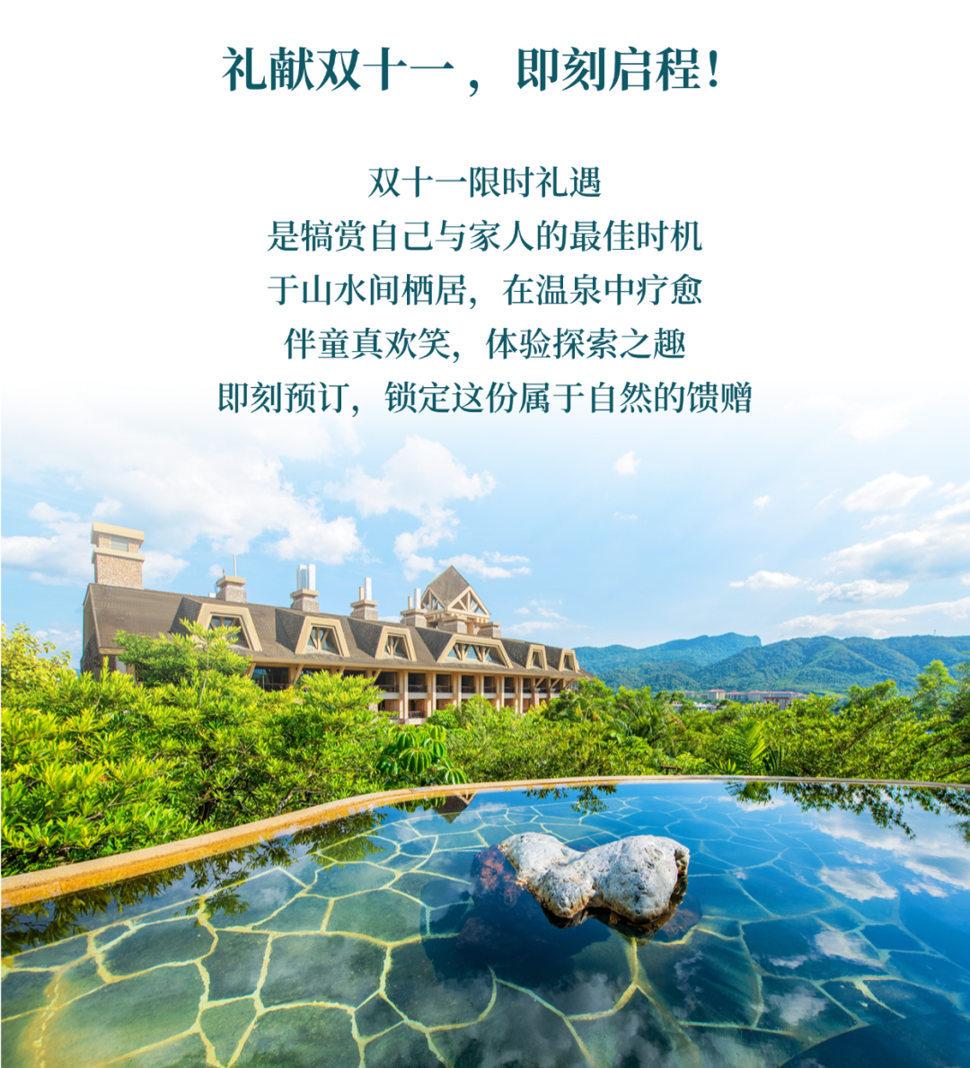 【清远英德·巧克力王国】双11买一送一套餐!平日周末不加收!399元奥园沐云假日酒店臻品房1间2晚(不可拆分)+无限次泉林汤泉+免费观光巧克力小镇!可升级含农家餐套餐!全年通用赶紧囤~