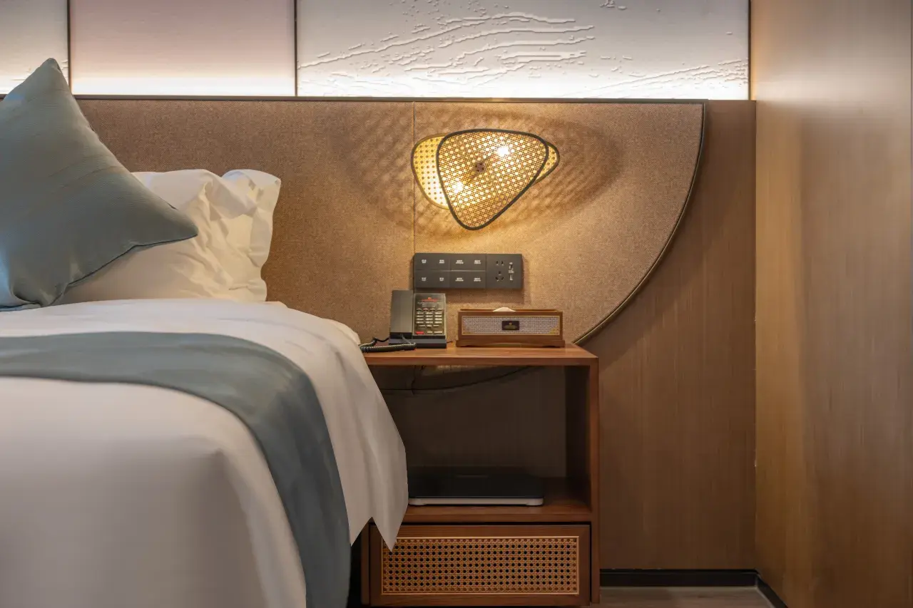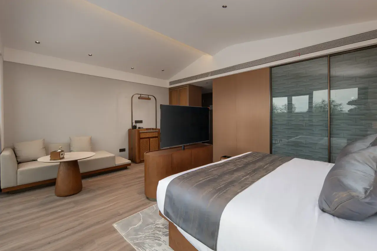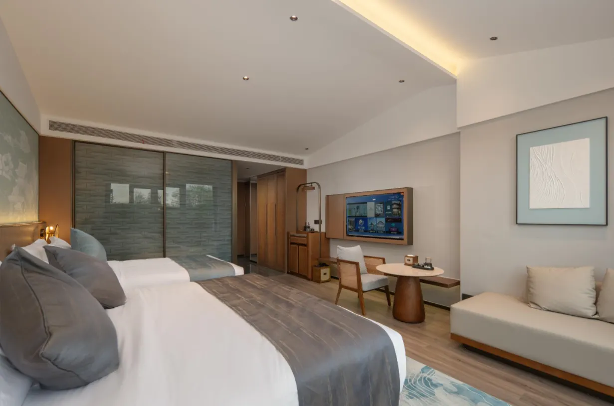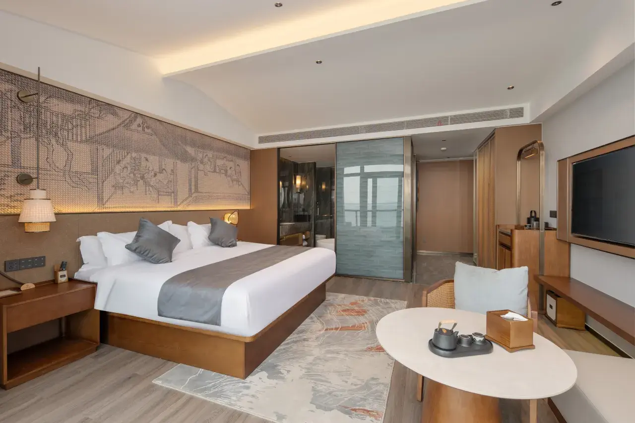 酒店坐落于浙江海宁钱塘江畔,雷迪森度假酒店以“明月映江潮”为设计灵感,将现代美学与江南水乡风情完美融合。酒店紧邻观潮胜地,背倚葱郁园林,独享静谧与壮阔的双重体验,是商务出行、家庭度假、浪漫旅居的理想之选。