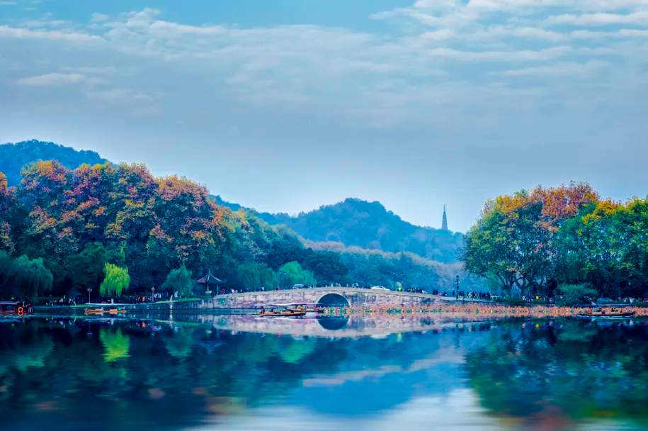 走在桥上,左手边是西湖波光,右手边是白堤的杨柳依依(春季嫩绿、秋季金黄),导游会讲 “许仙与白娘子断桥相会” 的传说,让你走桥也能 “沉浸式入戏”。