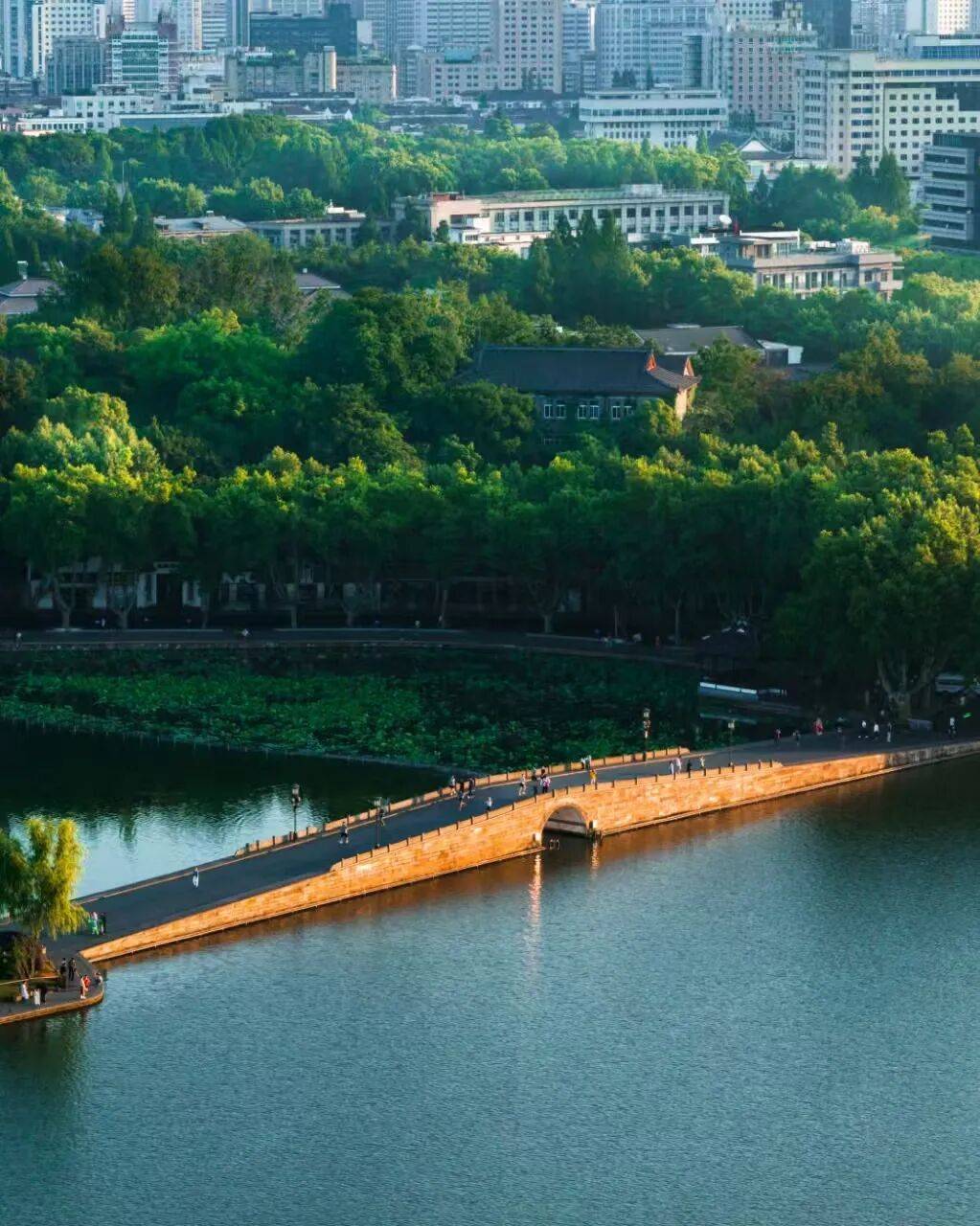 苏堤是北宋苏东坡任杭州知州时修建的,全长 2.8 公里,串联起西湖西侧的多个景点。套餐会带你走苏堤的精华段(约 1 公里),沿途经过映波、锁澜、望山等六座石拱桥,每座桥的视角都不同。