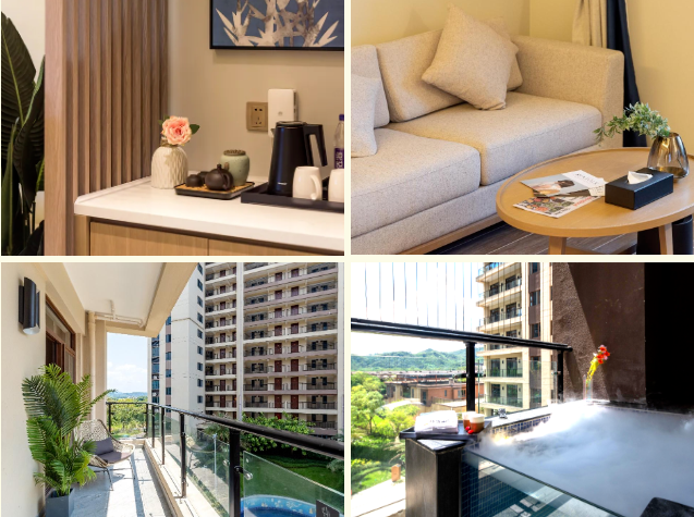 升级园景泡池房叠加加收100元/间/晚,升级畔溪山景泡池房叠加加收200元/间/晚.