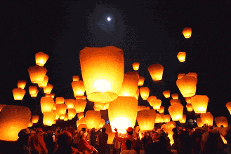 在沙扒小镇的夜晚,千盏天灯齐飞的景象