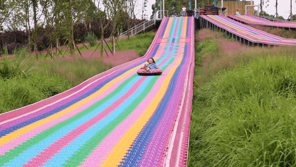 滑道超级长,宛如坐在鲜艳的彩虹上