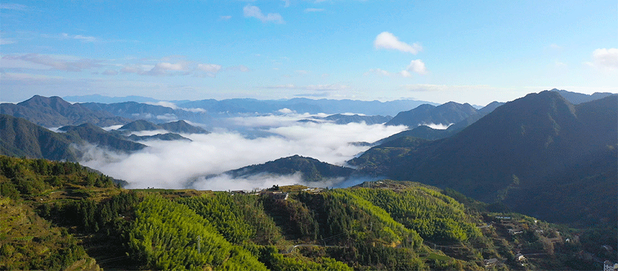 望山,推窗便可与一片竹海对望,原舍前是一条乡道,除此三面都被青山茶田环绕。