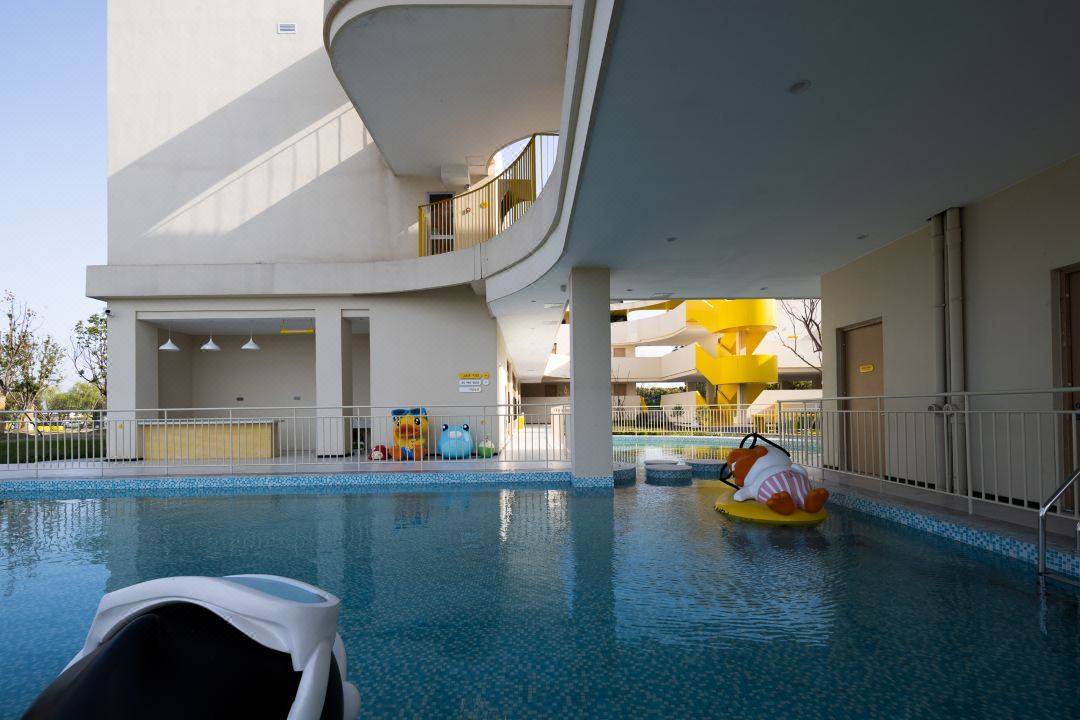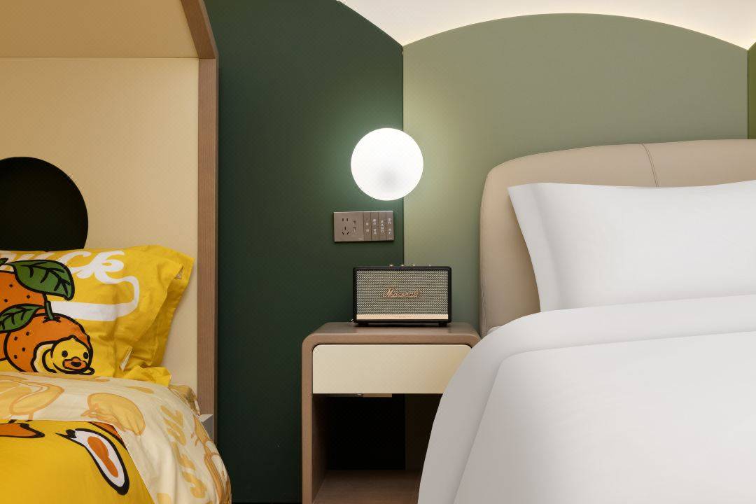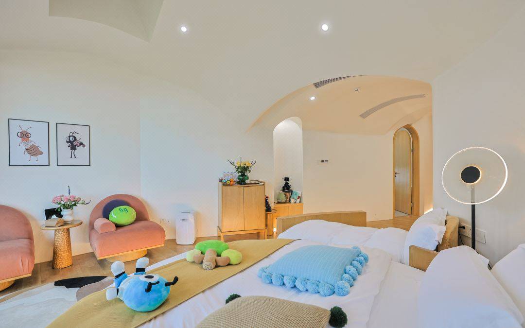 彩虹步道、巨型小黄鸭雕塑、手绘涂鸦墙等元素贯穿整个度假村,从入口到客房区,每一步都充满童趣惊喜。从大堂到走廊,B.Duck元素无处不在:马赛克壁画、桃桃鸭主题装饰、萌化人心的儿童活动室。
