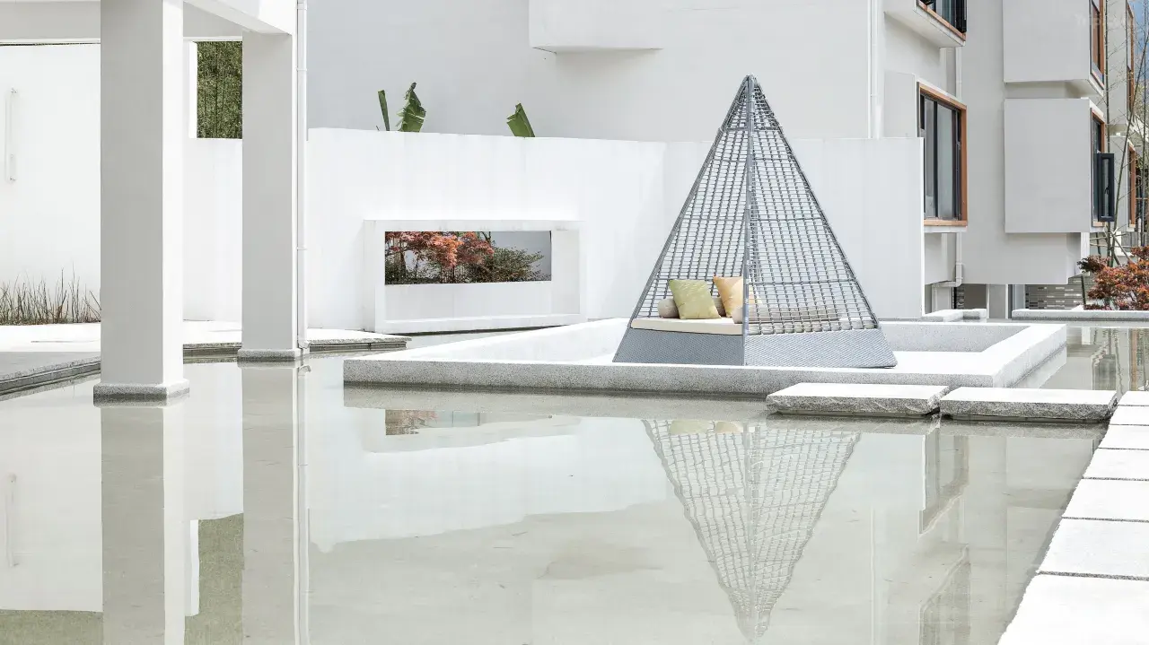 自然留白去装饰化的简约设计出自著名建筑设计师闫明之手,随处可见的几何形状就如相机取景器,将不同的风景透过“几何取景框”载入你的眼帘。