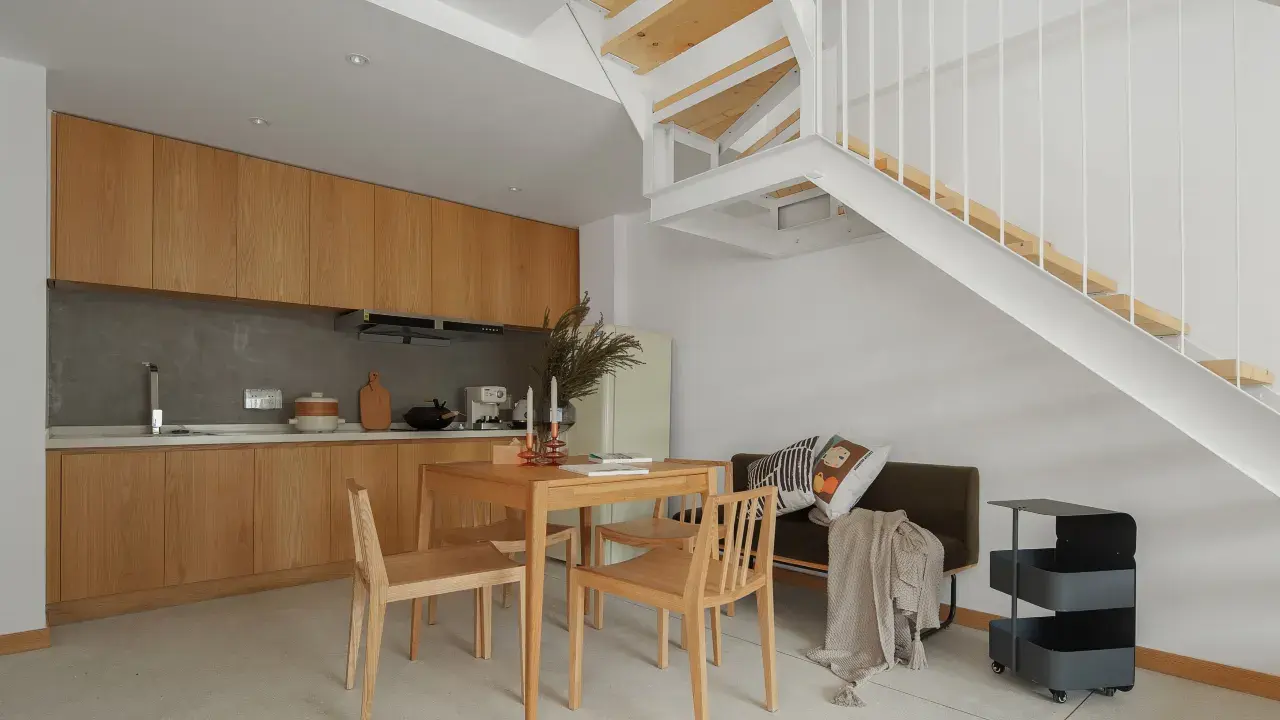 整个民宿的室内设计结合了江南水乡文化、金砖文化、园林文化,实现了简约现代与老旧传统的和谐统一。