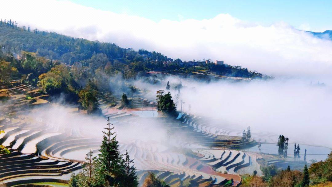 这个艰难保留下来的“世界非物质文化遗产”的原始村落,还是电影《无问西东》及多部影片的取景地。这里一年四季都有苍茫云海相伴,云雾缭绕在梯田上方,随风轻轻浮动,此般美景仿若田园间的海市蜃楼。