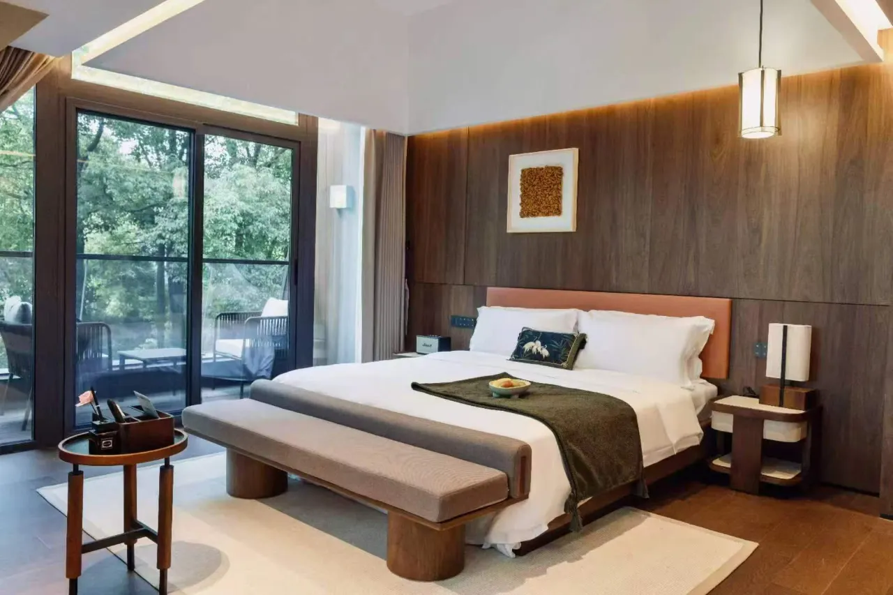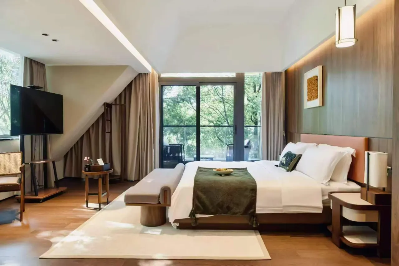 周末不加价【安吉·君澜老庄山居汤泉度假酒店+松之谷汤泉】¥998住叠排别墅丨素朴LOFT复式双床房 +早餐+晚餐+下午茶+汉服体验+旅拍+乌篷船体验!