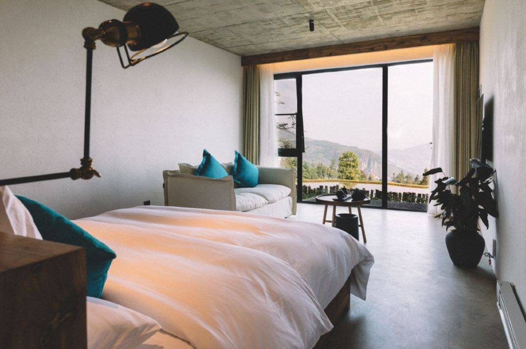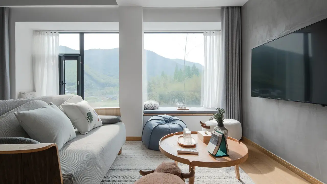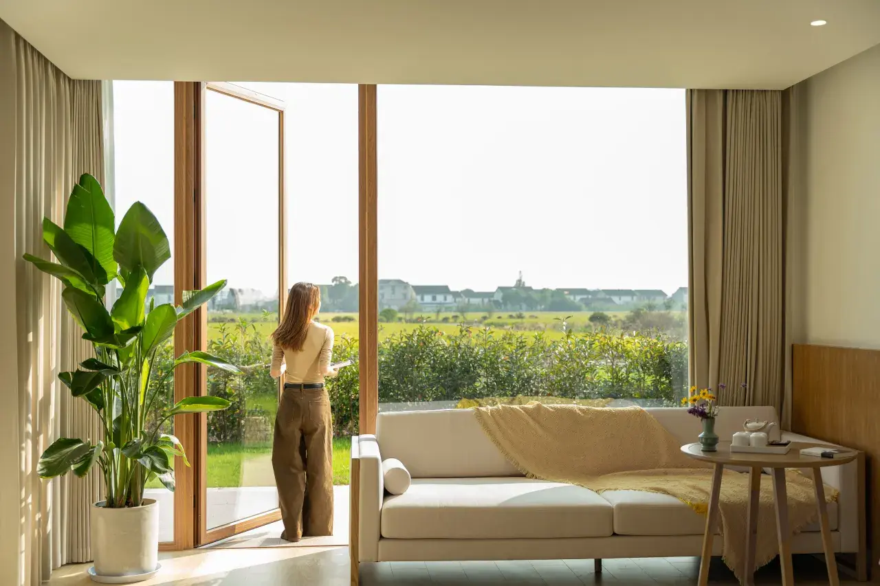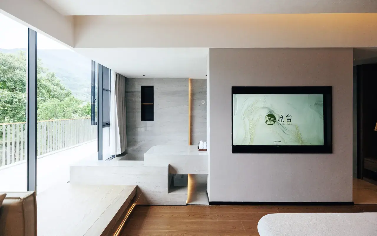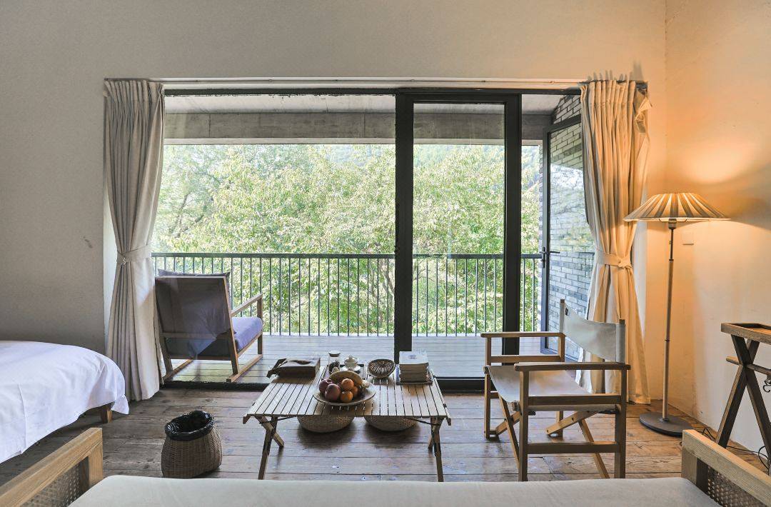 原舍的房间,都可以看得到风景。随便一扇窗,都是一个绝佳的画框。本次套餐的房型是山景阳台大床房/竹海·山景阳台亲子双床房。