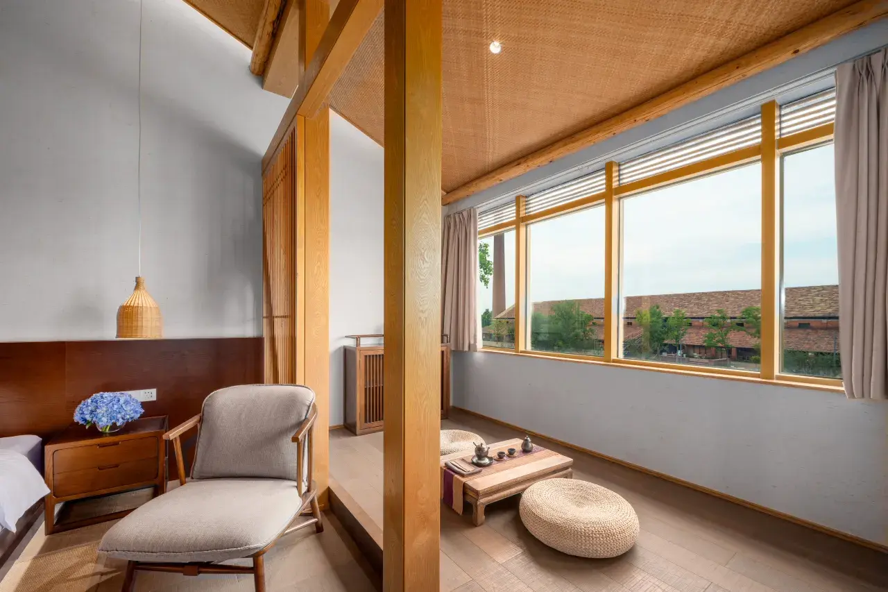整个民宿的室内设计结合了江南水乡文化、金砖文化、园林文化,实现了简约现代与老旧传统的和谐统一。
