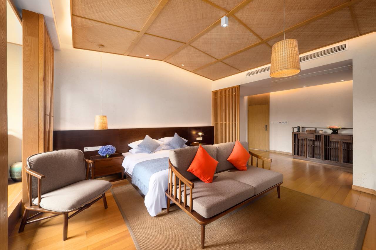 周末不加价【安吉·君澜老庄山居汤泉度假酒店+松之谷汤泉】¥998住叠排别墅丨素朴LOFT复式双床房 +早餐+晚餐+下午茶+汉服体验+旅拍+乌篷船体验!