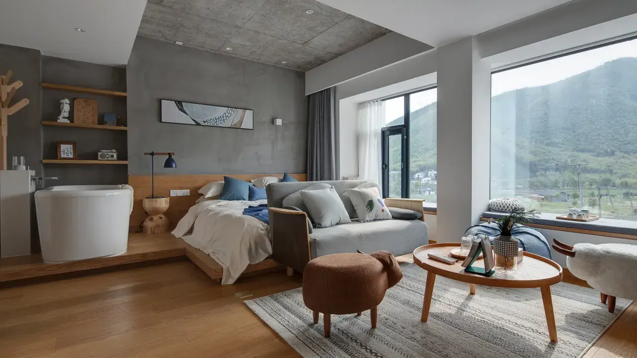 客房统一采用了原木和素净的色调,整个空间都在追求温馨舒适,去除一切多余,更能体会到本真,每一间房都留有观景阳台,空间通透,贴近自然,尽揽美景。